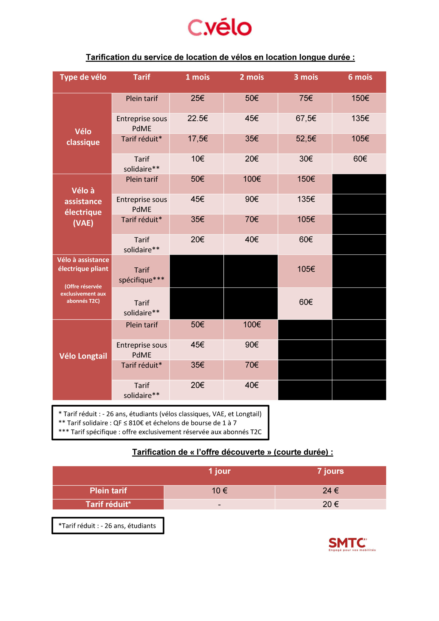 Pour vous abonner, rendez-vous ici ou à l’agence C.vélo sur le parvis de la gare SNCF,
